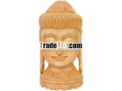 Handmade Wood Sculpture Buddha Head Figurine Indian ArtHandmade Wood Sculpture Buddha Head Figurine Indian Art