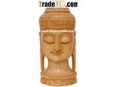 Handmade Wood Sculpture Buddha Head Figurine Indian ArtHandmade Wood Sculpture Buddha Head Figurine Indian Art