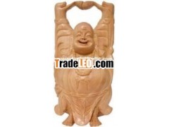 Wooden Sculpture Happy Laughing Buddha Vaastu India Art Religious Crafts Wooden Craft
