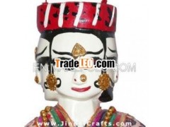 In this rare design of puppet four faces of King and queen havebeen provided in a single puppet as depicred in picture.This product is handmade. One of finest artisan in India hasmade using his hands in traditional process. Design and size can becustomized as per buyers’ specifications. This is fine piece ofgreat traditional handicrafts from India.