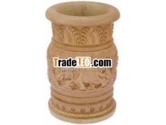 Hand Carved Wood Decorative Pen Holder Stand India Art Home Decoration Wooden Craft