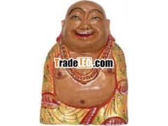 Hand Carved Wooden Painted Laughing Buddha Figure IndiaThis product is handmade. One of finest artisan in India hasmade using his hands in traditional process. Design and size can becustomized as per buyers’ specifications. This is fine piece ofgreat traditional handicrafts from India.