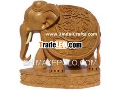 In the sculpture, leaves have been carved on the body of elephantto decorate it. base at the bottom has been pasted seperately.This product is handmade. One of finest artisan in India hasmade using his hands in traditional process. Design and size can becustomized as per buyers’ specifications. This is fine piece ofgreat traditional handicrafts from India.