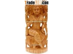 Wooden Craft Handcrafted Wooden Goddess Lakshmi Hindu Sculpture Art Handicraft