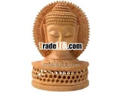 Handmade Wood Sculpture Buddha Head Figurine Indian ArtHandmade Wood Sculpture Buddha Head Figurine Indian Art