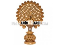 This is hollow peacock sculpture in dancing posture, made fromkadam wood.This product is handmade. One of finest artisan in India hasmade using his hands in traditional process. Design and size can becustomized as per buyers’ specifications. This is fine piece ofgreat traditional handicrafts from India.