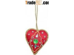 Heart-Hand Embroidered Beaded Christmas OrnamentsThis product is handmade. One of finest artisan in India hasmade using his hands in traditional process. Design and size can becustomized as per buyers’ specifications. This is fine piece ofgreat traditional handicrafts from India.